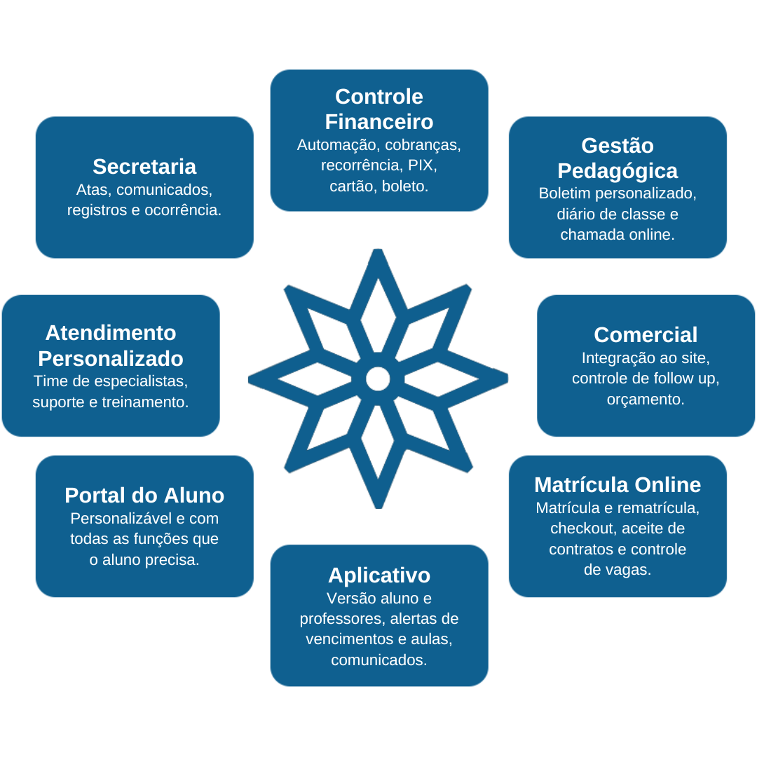 Acompanhamento pedagógico, mensagens, financeiro e muito mais.